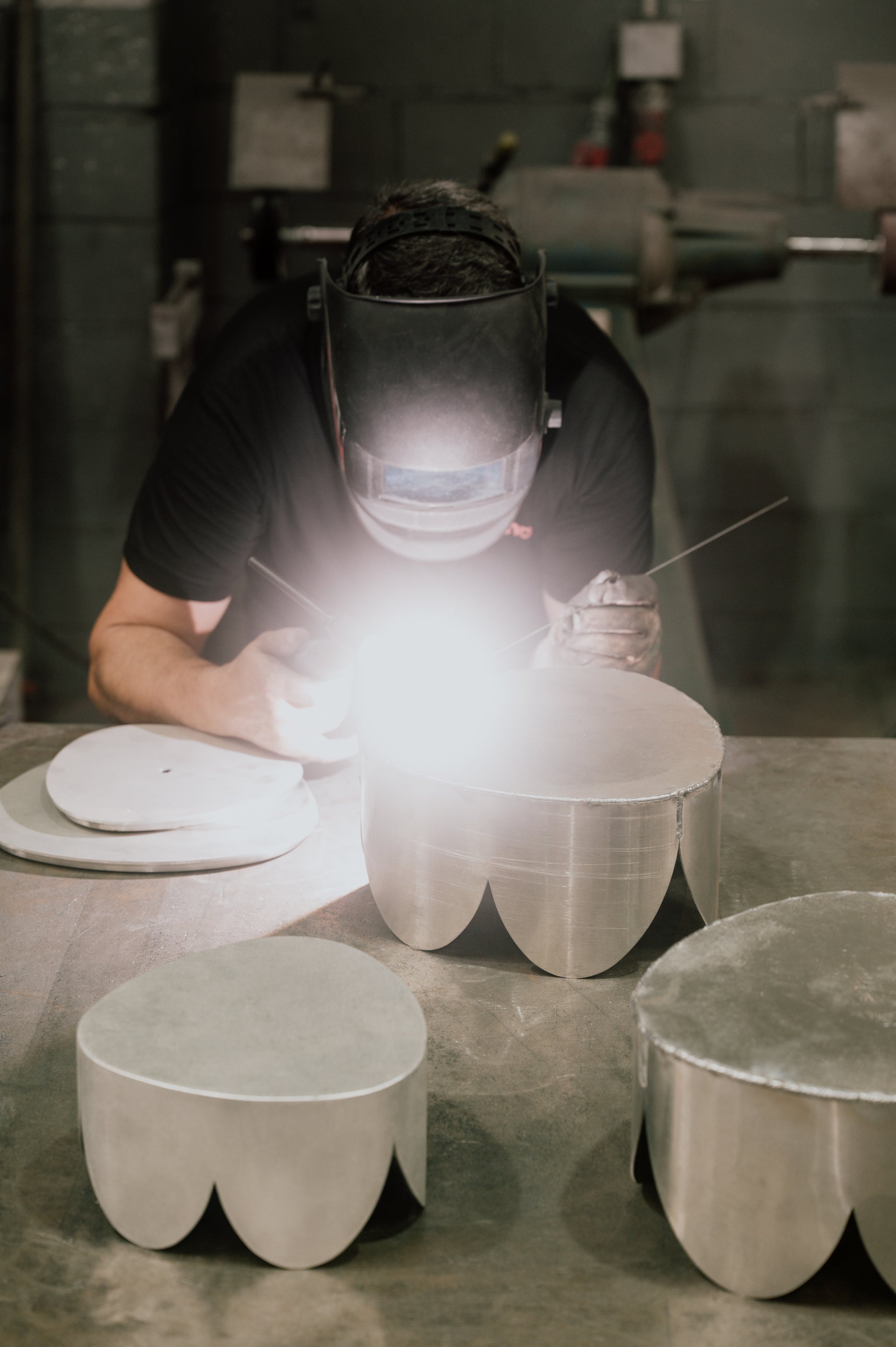 Des de Barcelona, unim artesania i indústria. Cada taula, cadira o llum combina processos manuals i automatitzats amb el metall com a protagonista. Cada peça és tan singular com qui la cregui.